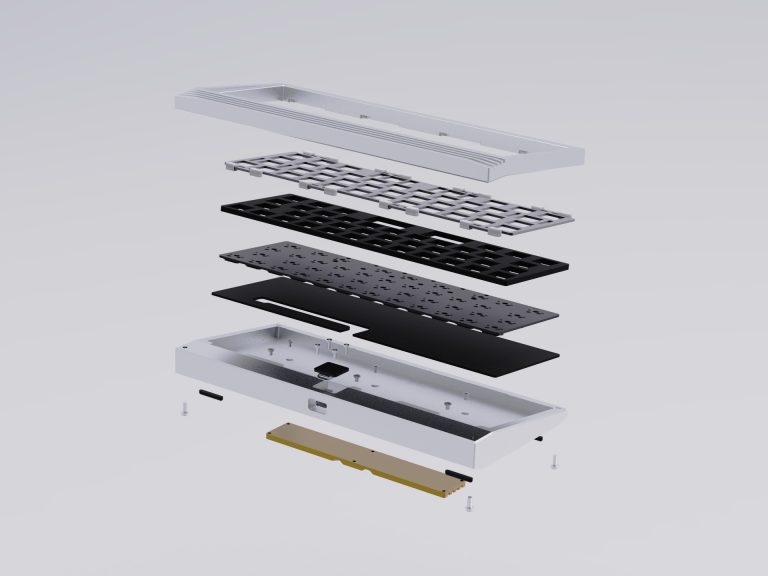 This keyboard brings together bold industrial style and classic vibes. With its sturdy metal frame, clean angles, and retro-inspired details, Kradle X delivers a distinctive look and a comfortable typing experience.